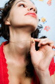 młoda kobieta szczupła na sobie biustonosz na białym tle