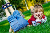 Szczęśliwa dziewczynka na trawnik