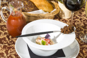 Zdjęcie "w restauracji ozdobione krewetki zupa pomidorowa" może być wykorzystywane do celów osobistych i komercyjnych zgodnie z warunkami zakupionej licencji Royalty-free. Obraz jest dostępny do pobrania w jakości wysokiej rozdzielczości do 5760x3840.