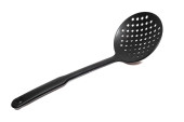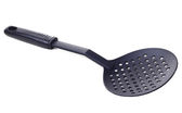 Czarna kuchnia szpatułki lub naczynia kuchenne zbliżenie na białym tle