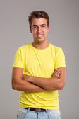 Zdjęcie "t-shirt na młodego człowieka, na szarym tle" może być wykorzystywane do celów osobistych i komercyjnych zgodnie z warunkami zakupionej licencji Royalty-free. Obraz jest dostępny do pobrania w jakości wysokiej rozdzielczości do 5760x3840.