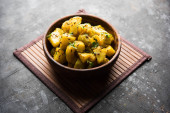 Lauki/doodhi ki sookhi sabji znany również jako butelka Gurda suchy przepis warzyw. serwowany w misce lub Karahi. Selektywna koncentracja