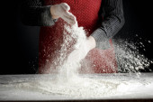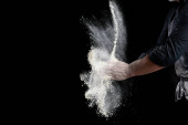 Zdjęcie "Szef kuchni w czarnym mundurze posiada patelnię z białą solą " może być wykorzystywane do celów osobistych i komercyjnych zgodnie z warunkami zakupionej licencji Royalty-free. Obraz jest dostępny do pobrania w jakości wysokiej rozdzielczości do 5760x3840.