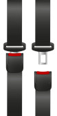 Realistyczne samochodowe otwarte i zamknięte pasy bezpieczeństwa. Zestaw mocowanego i odblokowanego pasa bezpieczeństwa