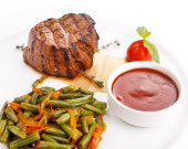 mięso z grilla z sosem