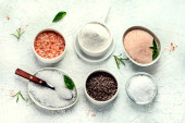 Zdjęcie "Różne rodzaje soli na szarym tle. " może być wykorzystywane do celów osobistych i komercyjnych zgodnie z warunkami zakupionej licencji Royalty-free. Obraz jest dostępny do pobrania w jakości wysokiej rozdzielczości do 5760x3840.