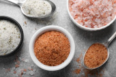 Zdjęcie "Różne rodzaje soli na szarym tle. " może być wykorzystywane do celów osobistych i komercyjnych zgodnie z warunkami zakupionej licencji Royalty-free. Obraz jest dostępny do pobrania w jakości wysokiej rozdzielczości do 5760x3840.