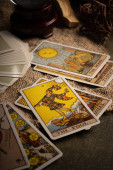 Zdjęcie "Karty tarota z torbą. strzał w Studio" może być wykorzystywane do celów osobistych i komercyjnych zgodnie z warunkami zakupionej licencji Royalty-free. Obraz jest dostępny do pobrania w jakości wysokiej rozdzielczości do 5760x3840.