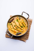 Zdjęcie "Dal Dhokli, Varan Phal lub Chakolya jest gudżarati, Rajasthani i Maharashtrian danie wykonane przy użyciu kształtu diamentów mąki pszennej ciasta gotowane w dal. Jest to łatwy posiłek pot. serwowany w misce." może być wykorzystywane do celów osobistych i komercyjnych zgodnie z warunkami zakupionej licencji Royalty-free. Obraz jest dostępny do pobrania w jakości wysokiej rozdzielczości do 5760x3840.
