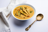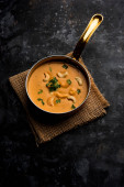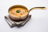 Zdjęcie "Dal Dhokli, Varan Phal lub Chakolya jest gudżarati, Rajasthani i Maharashtrian danie wykonane przy użyciu kształtu diamentów mąki pszennej ciasta gotowane w dal. Jest to łatwy posiłek pot. serwowany w misce." może być wykorzystywane do celów osobistych i komercyjnych zgodnie z warunkami zakupionej licencji Royalty-free. Obraz jest dostępny do pobrania w jakości wysokiej rozdzielczości do 5760x3840.