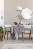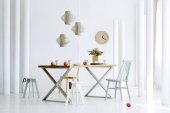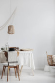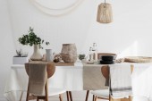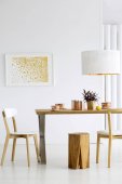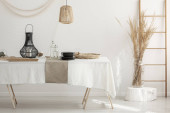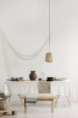 Prawdziwe zdjęcie nowoczesnego białego i beżowego wnętrza pokoju dziennego
