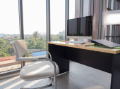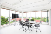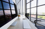 Zdjęcie "Szerokątny wizerunek nowoczesnego biura" może być wykorzystywane do celów osobistych i komercyjnych zgodnie z warunkami zakupionej licencji Royalty-free. Obraz jest dostępny do pobrania w jakości wysokiej rozdzielczości do 5760x3840.