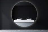 Zdjęcie "Biała łazienka wnętrze z podwójną umywalką" może być wykorzystywane do celów osobistych i komercyjnych zgodnie z warunkami zakupionej licencji Royalty-free. Obraz jest dostępny do pobrania w jakości wysokiej rozdzielczości do 5760x3840.