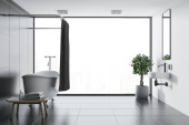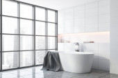 Zdjęcie "Kącik łazienkowe z białą podłogą i wanną" może być wykorzystywane do celów osobistych i komercyjnych zgodnie z warunkami zakupionej licencji Royalty-free. Obraz jest dostępny do pobrania w jakości wysokiej rozdzielczości do 5760x3840.