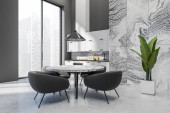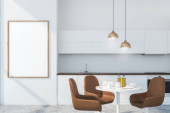 Zdjęcie "Biała marmurowa kuchnia ze stołem i wyspą" może być wykorzystywane do celów osobistych i komercyjnych zgodnie z warunkami zakupionej licencji Royalty-free. Obraz jest dostępny do pobrania w jakości wysokiej rozdzielczości do 5760x3840.