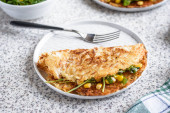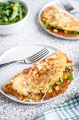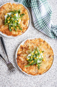 Zdjęcie "Szwajcarski Rosti ziemniaczane z kukurydzą i rakieta Sałatka podawane na szarym tle. Tradycyjne danie szwajcarskie" może być wykorzystywane do celów osobistych i komercyjnych zgodnie z warunkami zakupionej licencji Royalty-free. Obraz jest dostępny do pobrania w jakości wysokiej rozdzielczości do 5760x3840.