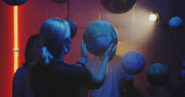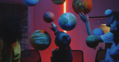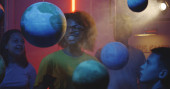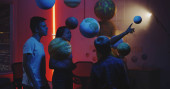 Nauczyciel wyjaśniający astronomii uczniom