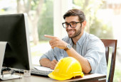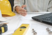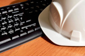 Zdjęcie "Żółta Czapka inżyniera, okulary są umieszczane na biurku z komputerem w pokoju w pobliżu okien szklanych, a także pokazać tło zielonego ogrodu lub podwórku domu lub biura." może być wykorzystywane do celów osobistych i komercyjnych zgodnie z warunkami zakupionej licencji Royalty-free. Obraz jest dostępny do pobrania w jakości wysokiej rozdzielczości do 5760x3840.