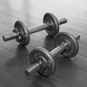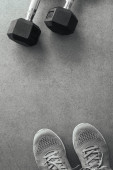 Czarno-biała wersja stóp i hantlami po treningu domowym na macie jogi