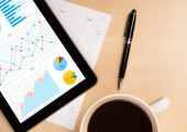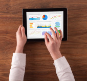 Kobieta biznesu, sporządzanie sprawozdań na tablecie