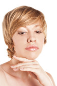 Zdjęcie "blondynka z krótkimi włosami. Studio białe tło" może być wykorzystywane do celów osobistych i komercyjnych zgodnie z warunkami zakupionej licencji Royalty-free. Obraz jest dostępny do pobrania w jakości wysokiej rozdzielczości do 5760x3840.