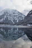 Kardyvach górskie jezioro z błękitne niebo i góry odbicia. Malownicze krajobraz dramatyczny jesień zachód słońca. Soczi, Rosja, góry Kaukazu