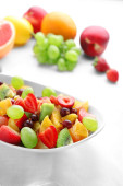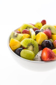 Asortyment pokrojone owoce na talerzu, na białym tle