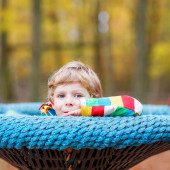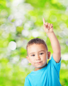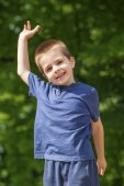 portret szczęśliwy uśmiechający się mały chłopiec w ogrodzie