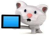 Postać z kreskówki zabawa z tabletu ilustracja - 3d