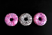 Widok z góry płaskie jagody i czekoladowe pączki na czarnym tle