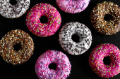 Zdjęcie "Widok z góry płaskie jagody i czekoladowe pączki na czarnym tle" może być wykorzystywane do celów osobistych i komercyjnych zgodnie z warunkami zakupionej licencji Royalty-free. Obraz jest dostępny do pobrania w jakości wysokiej rozdzielczości do 5760x3840.