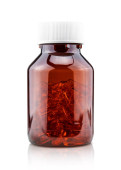 olej z ryb miękkie kapsułki żelowe w brązowej przezroczystej butelce z tworzywa sztucznego