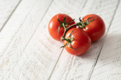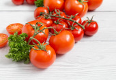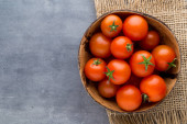 pomidory cherry leżą na jasnym drewnianej powierzchni