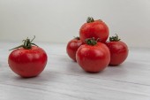 pomidory cherry leżą na jasnym drewnianej powierzchni
