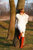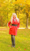 piękna dziewczyna ubrana w czerwony płaszcz i okulary