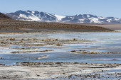 Red Lake, lub Laguna Colorada, na Altiplano w pobliżu Uyuni wewnątrz Eduardo Avaroa Rezerwat Narodowy w Boliwii na 4300 m nad poziomem morza.