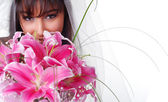 panna młoda z bukietem