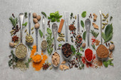 Zdjęcie "Przyprawy i zioła w zbliżenie na czarnym tle" może być wykorzystywane do celów osobistych i komercyjnych zgodnie z warunkami zakupionej licencji Royalty-free. Obraz jest dostępny do pobrania w jakości wysokiej rozdzielczości do 5760x3840.