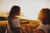 Portret pięknej matki i jej córki, podczas gdy dziewczyna jest Looki
