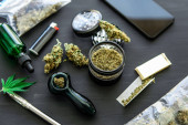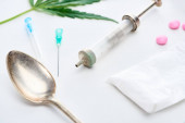 Zdjęcie "Widok z góry na pąki marihuany, liść konopi, heroina, pigułki i strzykawki na białym tle" może być wykorzystywane do celów osobistych i komercyjnych zgodnie z warunkami zakupionej licencji Royalty-free. Obraz jest dostępny do pobrania w jakości wysokiej rozdzielczości do 5760x3840.