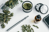 Zdjęcie "bliska widok na pąki marihuany, strzykawki i lżejsze w pobliżu różowy ekstazy na białym tle" może być wykorzystywane do celów osobistych i komercyjnych zgodnie z warunkami zakupionej licencji Royalty-free. Obraz jest dostępny do pobrania w jakości wysokiej rozdzielczości do 5760x3840.
