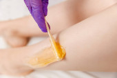 Kosmetolog kosmetyczka woskowanie kobiece nogi w centrum spa być
