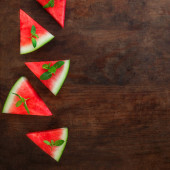 Rama lub obramowanie świeżych plastry arbuza z wapna, mięty i lodu. Widok z góry, miejsce na tekst, Kopiuj przestrzeń.