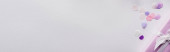 Widok z góry marihuany, strzykawki z heroiną, LSD i łyżką na białym tle, panoramiczny strzał