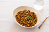 Zdjęcie "Ptitim lub Birdy, izraelskie makarony kuskus z pomidorów i ziół" może być wykorzystywane do celów osobistych i komercyjnych zgodnie z warunkami zakupionej licencji Royalty-free. Obraz jest dostępny do pobrania w jakości wysokiej rozdzielczości do 5760x3840.