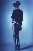 pełny rozwój zdjęcie zmysłowy kobiety z czerwoną różą w studio