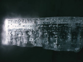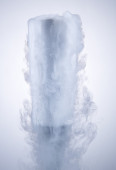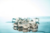 stos przezroczystych kostek lodu na Szmaragdowym i białym tle