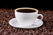 filiżanka kawy na tle ziaren kawy