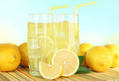pyszne lemoniady na stole na światło niebieskie tło