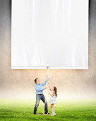 Zdjęcie "człowiek i dziewczynka ciągnąc transparent" może być wykorzystywane do celów osobistych i komercyjnych zgodnie z warunkami zakupionej licencji Royalty-free. Obraz jest dostępny do pobrania w jakości wysokiej rozdzielczości do 5760x3840.